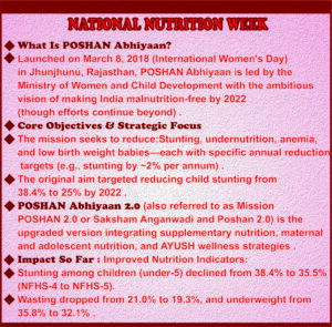 Also known as Saksham Anganwadi and POSHAN 2.0, this upgraded mission integrates broader interventions, including: