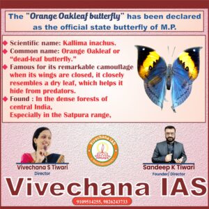 Madhya Pradesh is set to declare the Orange Oakleaf (Kallima inachus) as its state butterfly, marking a significant milestone in the state’s conservation efforts and biodiversity recognition. MP will become the first state in central India (not whole india) to notify a state butterfly, joining a select group of Indian states that have designated official state butterflies.